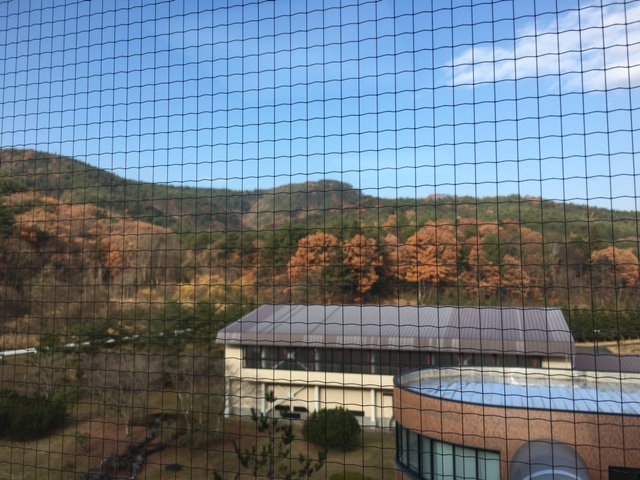 (写真)会場の裏手に見えた紅葉